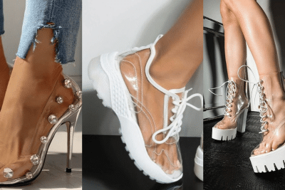 Sapatos femininos e sandálias com transparência